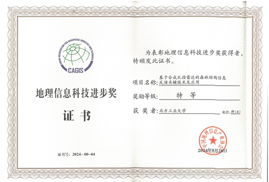 近日,2024年地理信息科技进步奖颁奖仪式在云南昆明举行。德赢官网信息学院申文杰老师作为成员申报的项目成果“基于合成孔径雷达的森林结构信息反演关键技术及应用”获评科技进步奖特等奖。